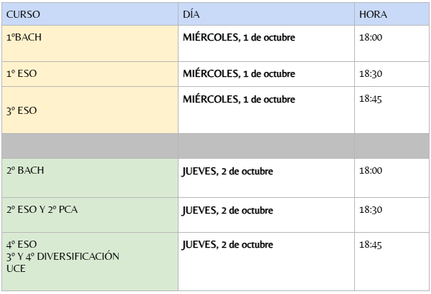30 de septiembre de 2025 por Administrador REUNIONES FAMILIAS 25-26 Las reuniones tendrán lugar en el aula de referencia del alumnado